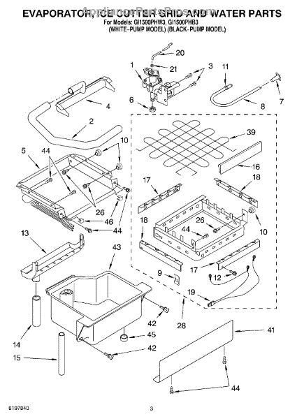 Parts for Whirlpool GI1500PHW3: 02 - Evaporator, Ice Cutter Grid And Water Parts