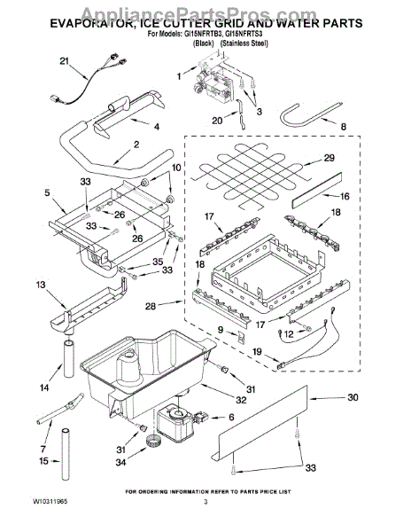 Parts for Whirlpool GI15NFRTS3: 02 - Evaporator Ice Cutter Grid And Water Parts