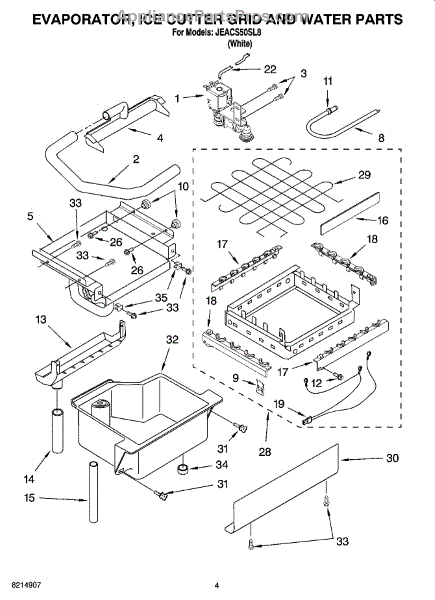 Parts for Whirlpool JEACS50SL8: 02 - Evaporator Ice Cutter Grid And Water Parts