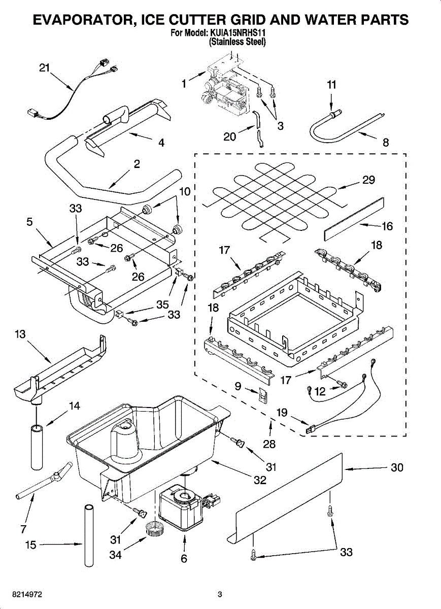 Parts for Kitchenaid KUIA15NRHS11: 02 - Evaporator, Ice Cutter Grid And Water Parts
