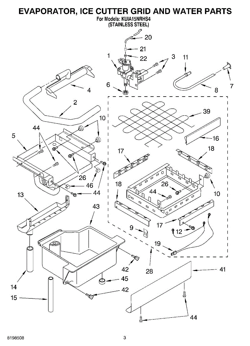 The Cutting Grid Kit is an OEM replacement part for Whirlpool ice machines. It cuts sheets of frozen ice into individual cubes, ensuring ice is available in uniform sizes. Each kit contains 8 screws and approximately 10 feet of wire. Two kits are required to replace both directions of the cutting grid to ensure comprehensive restoration of the ice maker’s functionality.