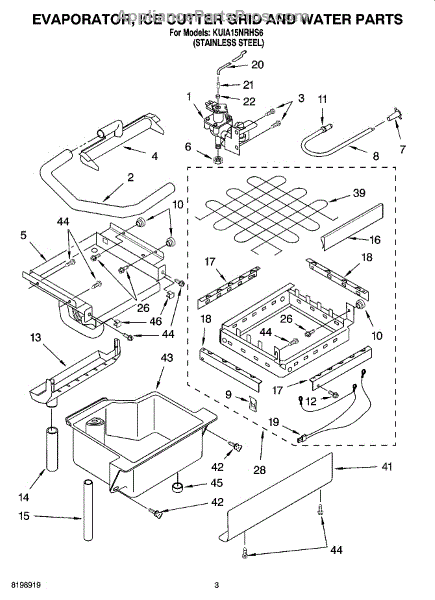 Parts for Kitchenaid KUIA15NRHS6: 02 - Evaporator Ice Cutter Grid And Water Parts