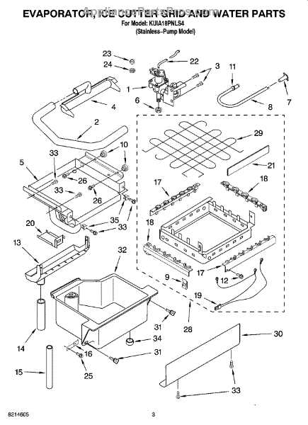 Parts for Kitchenaid KUIA18PNLS4: 02 - Evaporator, Ice Cutter Grid And Water Parts