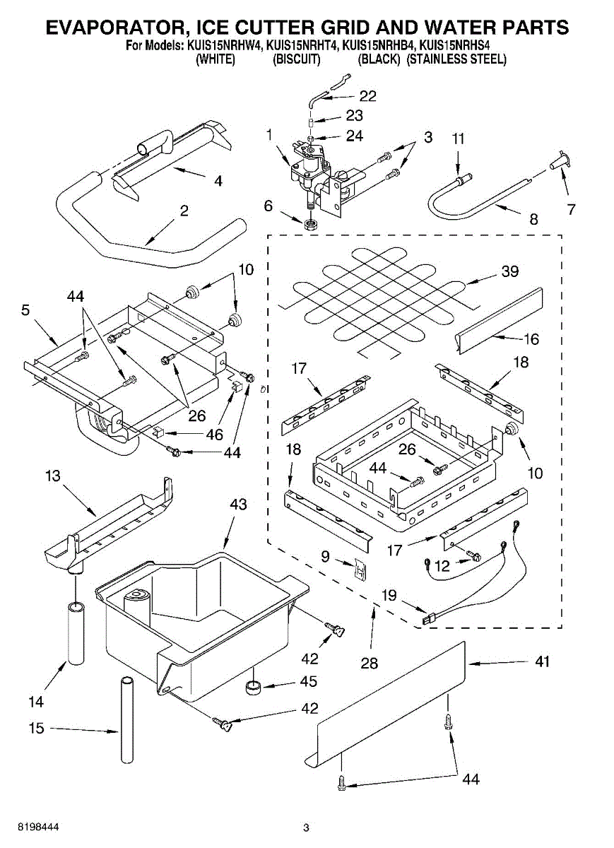 Parts for Kitchenaid KUIS15NRHS4: 02 - Evaporator Ice Cutter Grid And Water Parts