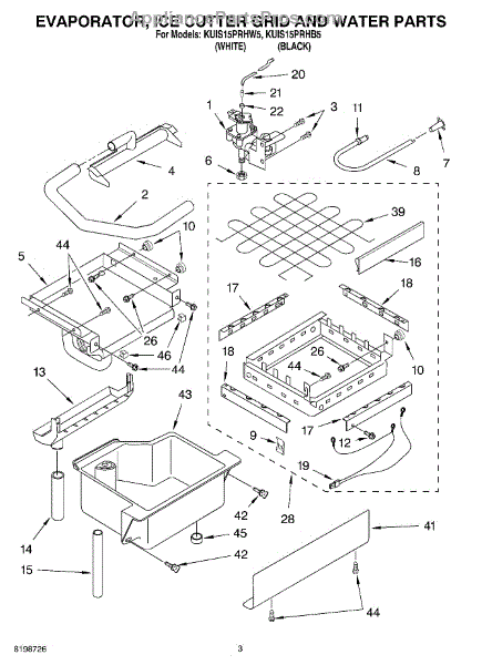 Parts for Kitchenaid KUIS15PRHB5: 02 - Evaporator Ice Cutter Grid And Water Parts