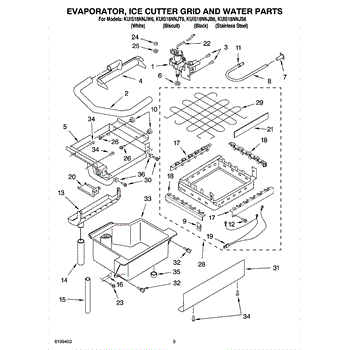 Parts for Kitchenaid KUIS18NNJW6: 02 - Evaporator, Ice Cutter Grid And Water Parts