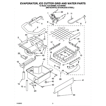 Parts for Kitchenaid KUIV18NNMM1: 02 - Evaporator Ice Cutter Grid And Water Parts