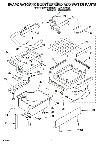 Parts for Kitchenaid KUIV18NNMS4: 02 - Evaporator, Ice Cutter Grid And Water Parts