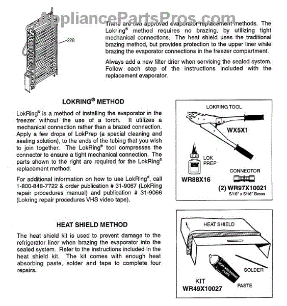 Parts for Ge PSS25MCNAWW: Evaporator Instructions Parts