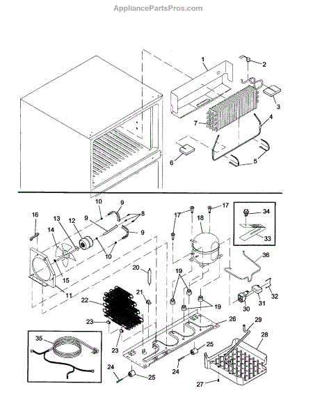 Parts for Amana DRT1802BC-PDRT1802BC0: Evaporator / Machine Compartment Parts
