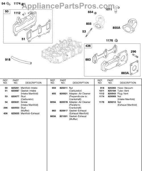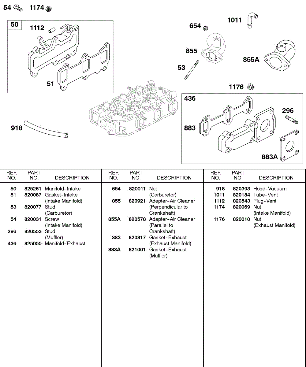 Parts for Briggs & Stratton 589447-0334-99: Exhaust Manifold, Intake Manifold Parts