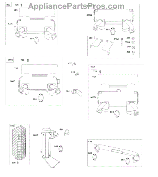 Parts for Briggs & Stratton 543477-0148-E1: Exhaust Manifold, Mufflers Parts
