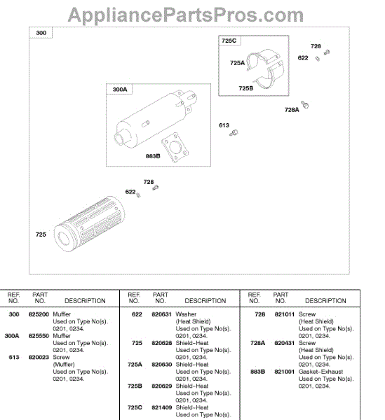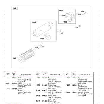 Parts for Briggs & Stratton 58A447-0201-E2: Exhaust Muffler Parts