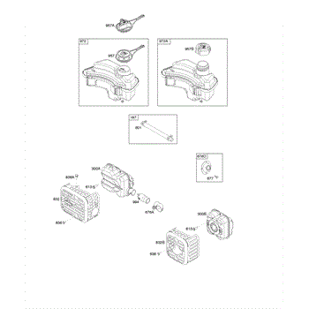 Parts for Briggs & Stratton 09P602-0037-H1: Exhaust System, Fuel Supply Parts