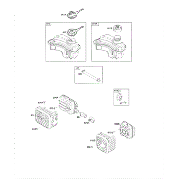Parts for Briggs & Stratton 09P602-0066-H1: Exhaust System, Fuel Supply Parts
