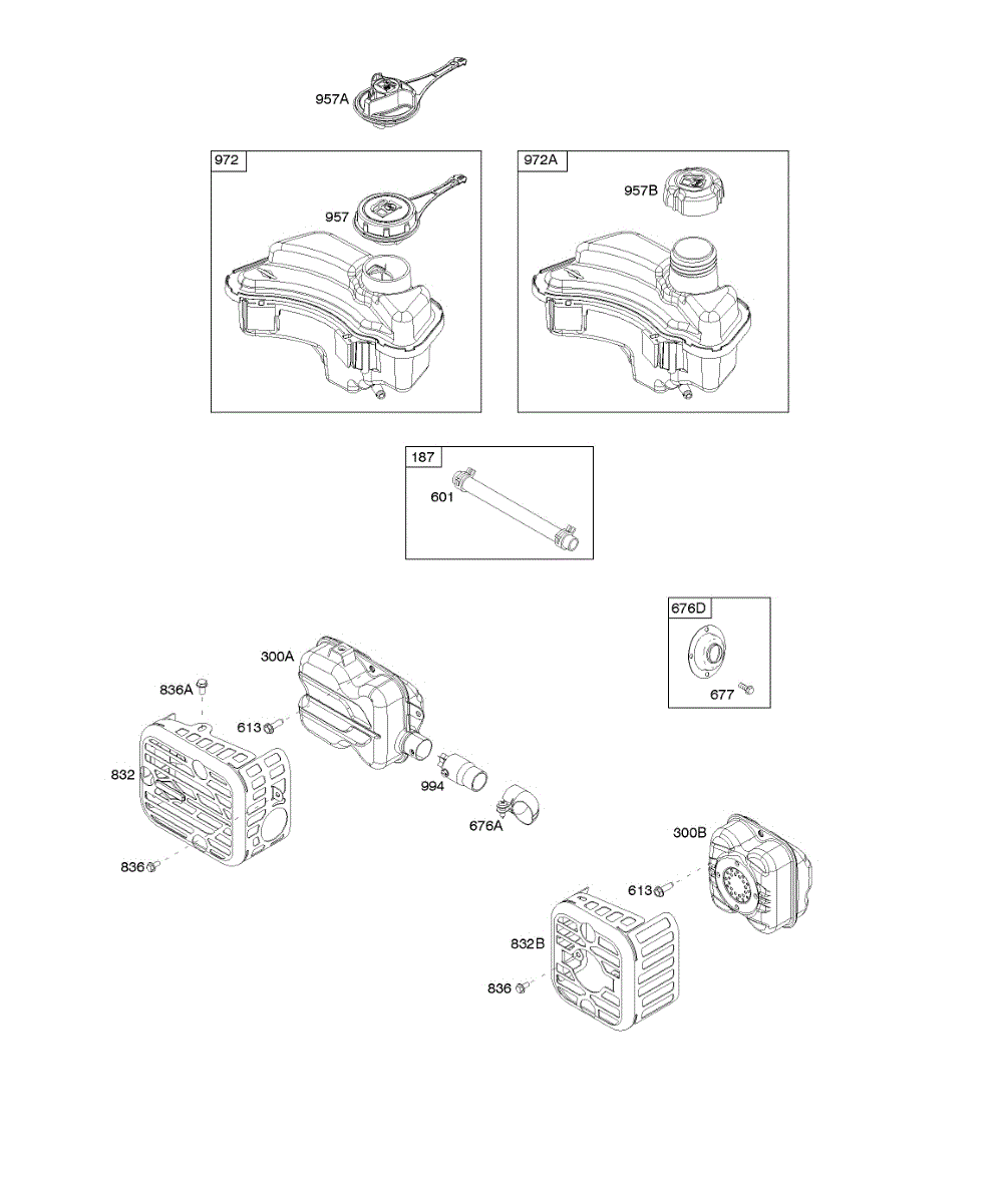 Parts for Briggs & Stratton 09P602-0082-H1: Exhaust System, Fuel Supply Parts