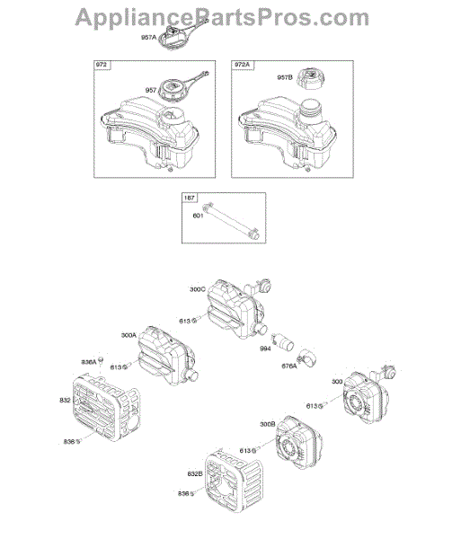 Parts for Briggs & Stratton 09P702-0018-H1: Exhaust System, Fuel Supply Parts