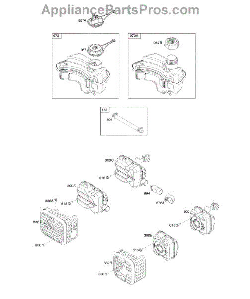 Parts for Briggs & Stratton 09P702-0142-H1: Exhaust System, Fuel Supply Parts