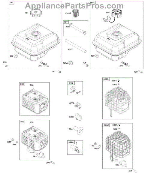 Parts for Briggs & Stratton 106232-0135-H1: Exhaust System, Fuel Supply Parts