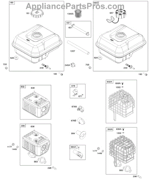 Parts for Briggs & Stratton 106232-0152-H1: Exhaust System, Fuel Supply Parts