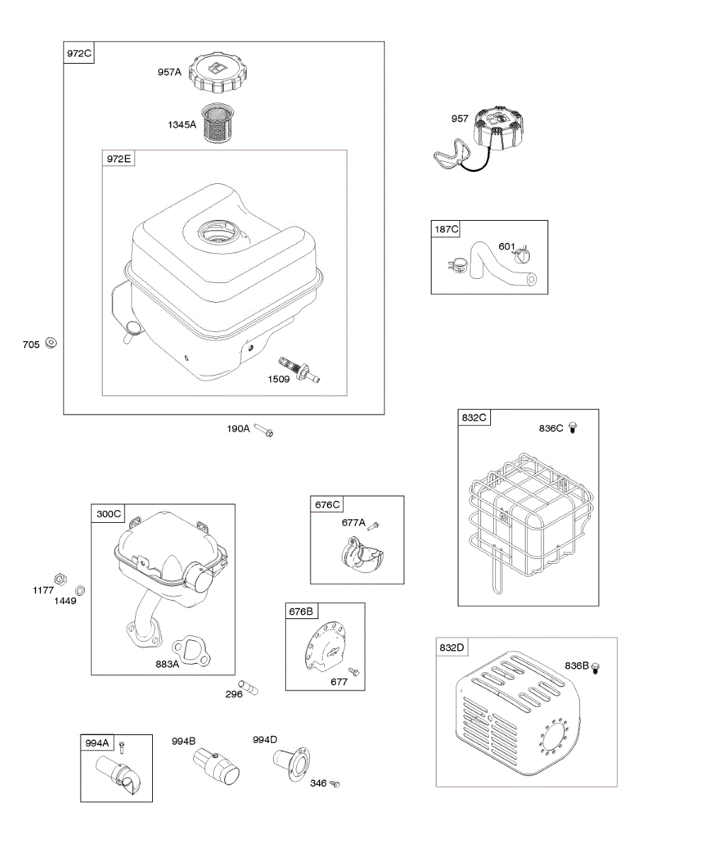 Parts for Briggs & Stratton 130G32-0027-H1: Exhaust System, Fuel Supply Parts