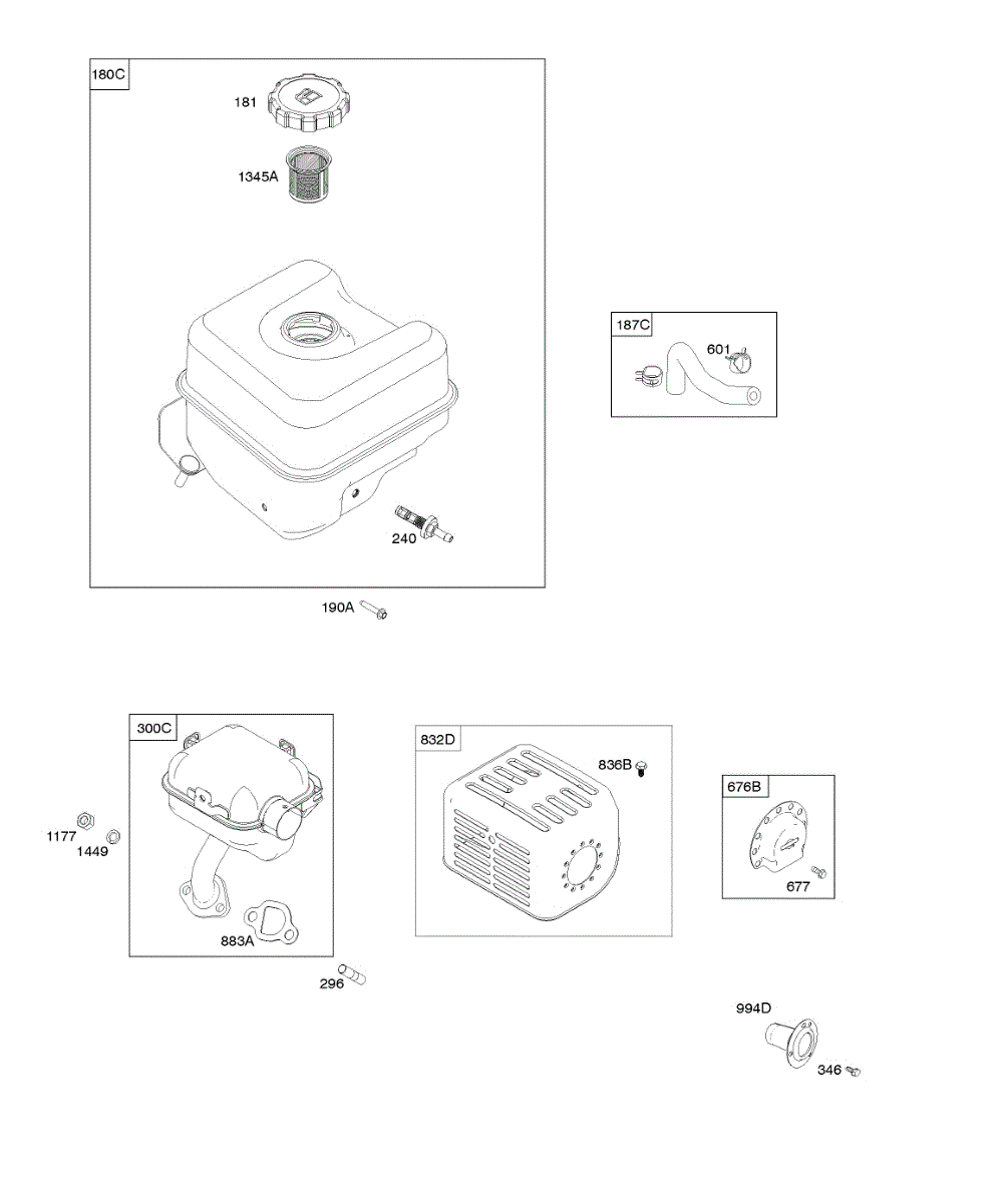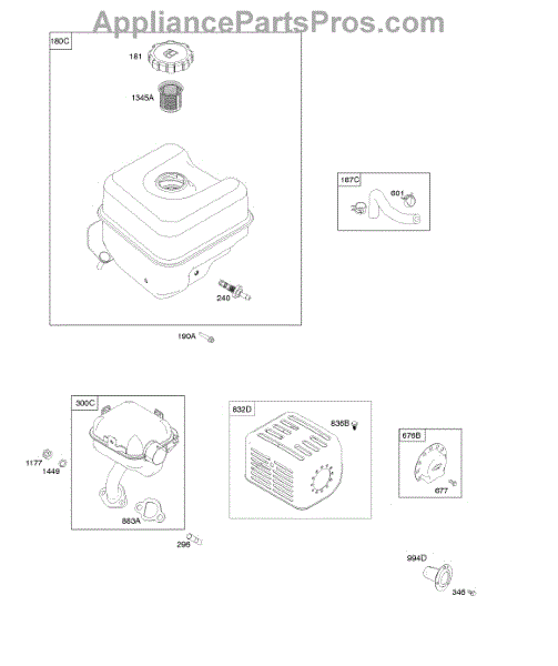 Parts for Briggs & Stratton 131G32-0001-01: Exhaust System, Fuel Supply Parts