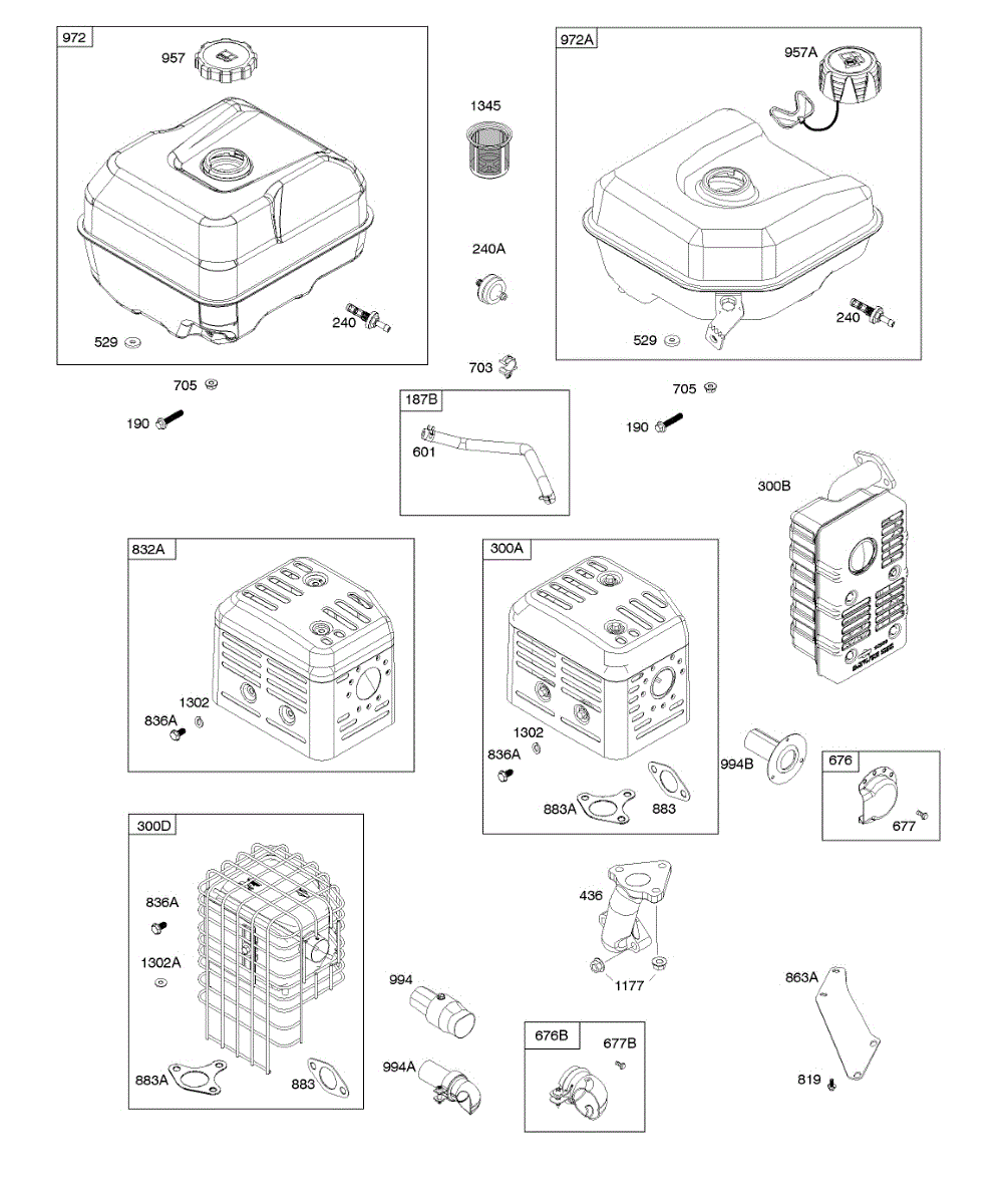 Parts for Briggs & Stratton 19N137-0070-H1: Exhaust System, Fuel Supply Parts