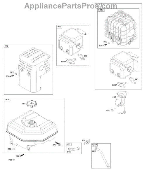 Parts for Briggs & Stratton 25M137-0020-H1: Exhaust System, Fuel Supply Parts