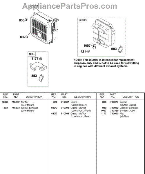 Parts for Briggs & Stratton 138432-0161-B1: Exhaust System (Low Mount) Parts