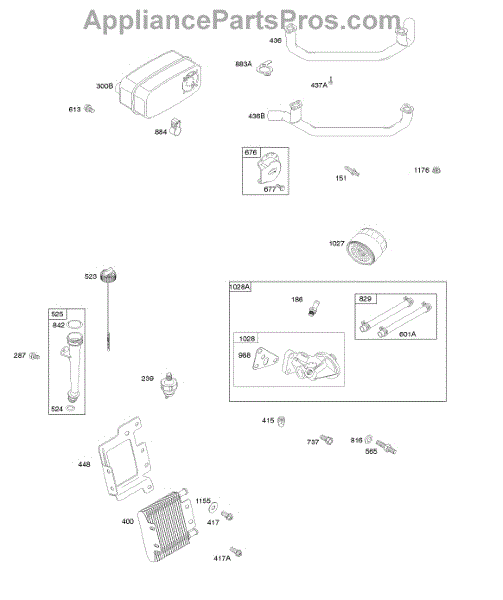 Parts for Briggs & Stratton 386777-0117-G1: Exhaust System, Oil Lubrication, Filter, And Cooler Parts