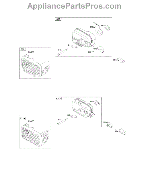 Parts for Briggs & Stratton 11P902-0131-B1: Exhaust System Parts