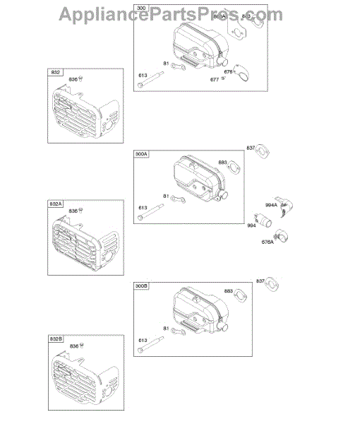 Parts for Briggs & Stratton 121S02-0003-F1: Exhaust System Parts