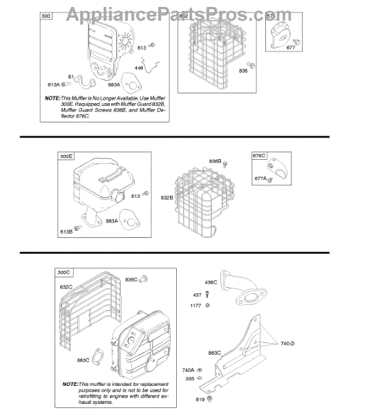 Parts for Briggs & Stratton 204312-0119-B1: Exhaust System Parts