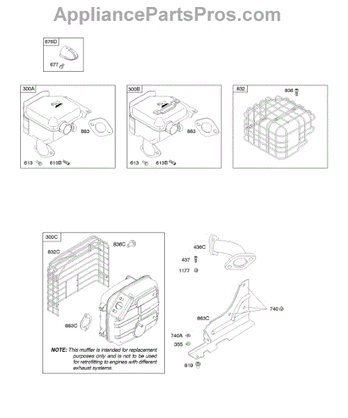 Parts for Briggs & Stratton 20C114-0274-E1: Exhaust System Parts