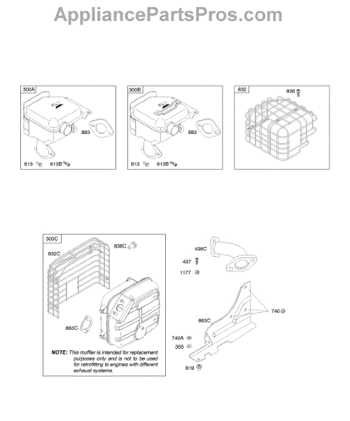 Parts for Briggs & Stratton 20C414-0160-E1: Exhaust System Parts