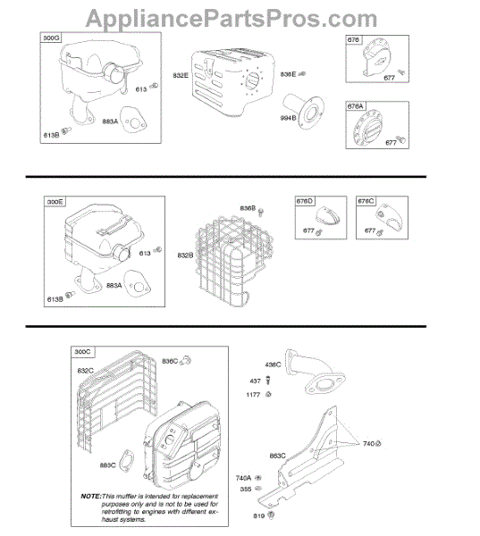 Parts for Briggs & Stratton 20H132-0133-B1: Exhaust System Parts