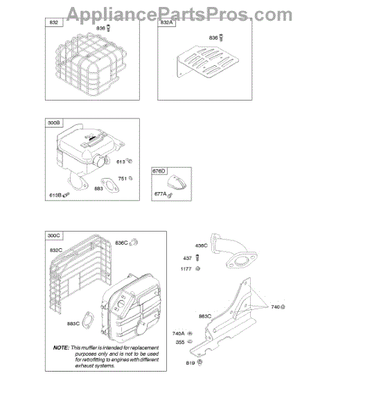 Parts for Briggs & Stratton 20M312-3007-F1: Exhaust System Parts