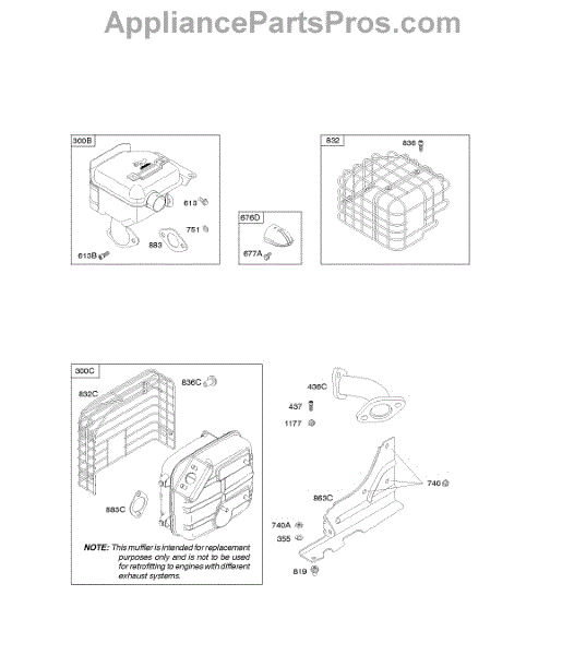 Parts for Briggs & Stratton 20P414-0019-E1: Exhaust System Parts