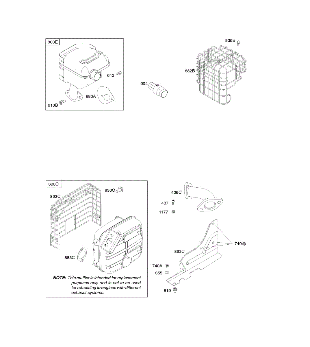 Parts for Briggs & Stratton 20S132-0111-F1: Exhaust System Parts