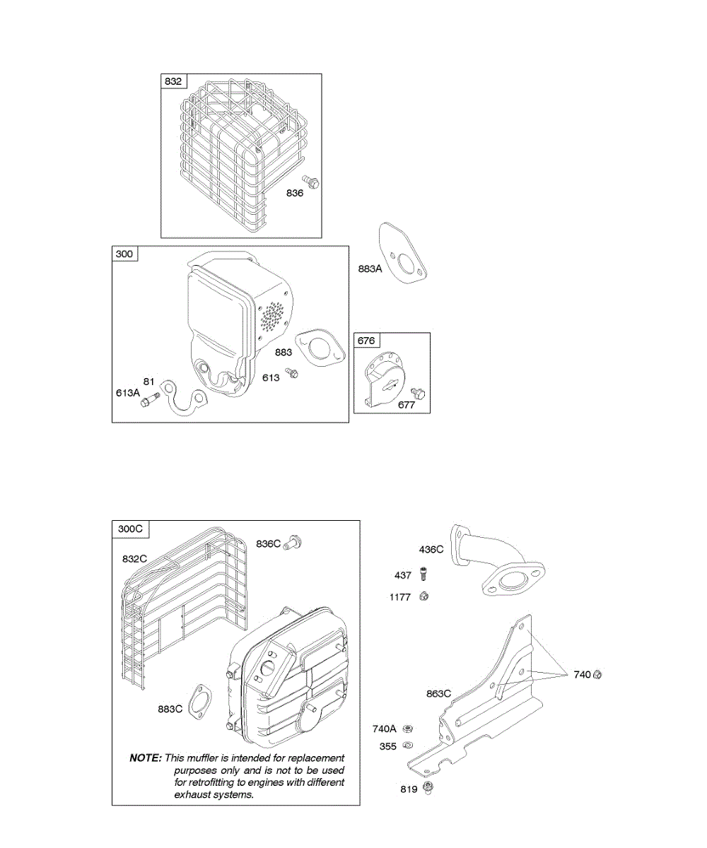Parts for Briggs & Stratton 210412-0100-E1: Exhaust System Parts