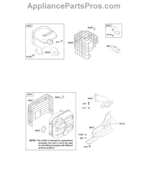 Parts for Briggs & Stratton 21S217-1119-F1: Exhaust System Parts