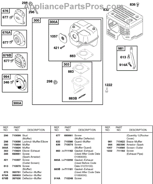 Parts for Briggs & Stratton 235432-0561-E9: Exhaust System Parts