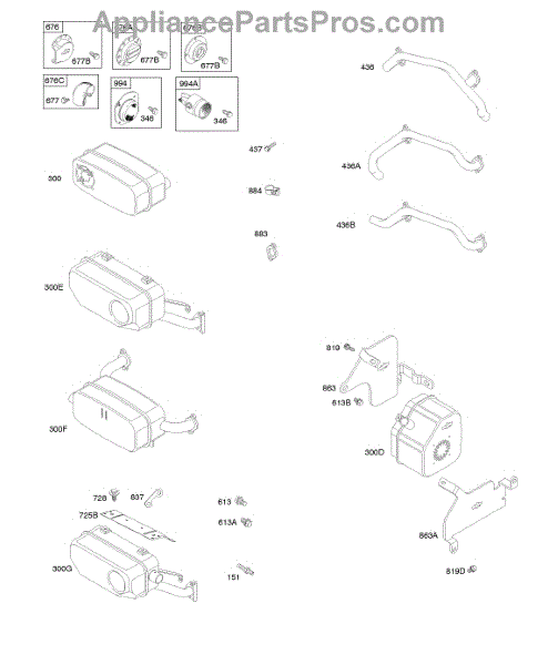 Parts for Briggs & Stratton 295447-0135-B1: Exhaust System Parts