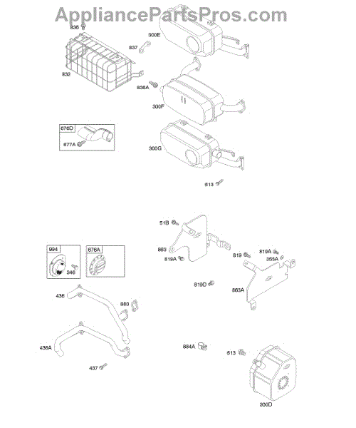 Parts for Briggs & Stratton 351447-1048-E2: Exhaust System Parts