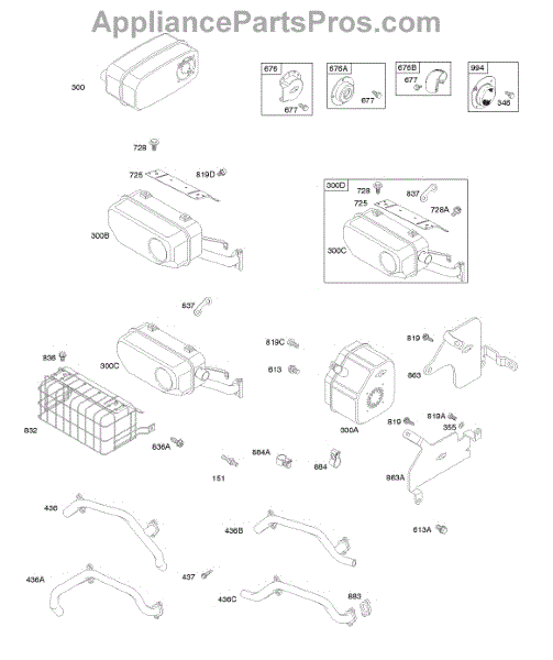 Parts for Briggs & Stratton 305447-0110-E2: Exhaust Systems Parts