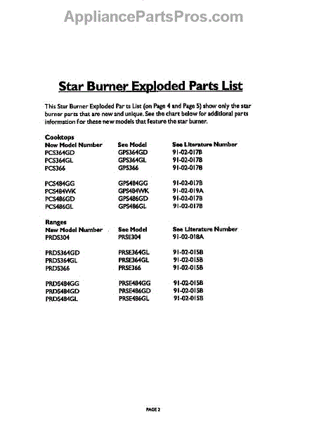 Parts for Thermador PRDS486GDL: Exploded Parts List Parts