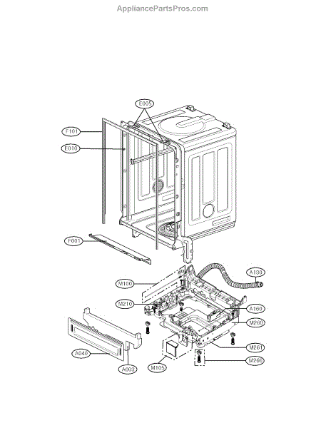 The Outer Door Seal is an OEM replacement part for LG dishwasher doors. Situated around the door opening, it creates a tight seal when closed to contain moisture, heat, and germs within the wash chamber. Proper door sealing is essential for sanitization, drying performance, and protection of surrounding cabinetry. Causes can be deterioration of sealing material over extended use, cracks or deformities allowing passage of water and air, or damage from closing force on the rigid door. Symptoms of a bad seal include: