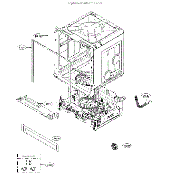 The Cover Assembly is an OEM component specifically designed for LG dishwashers. This assembly consists of the outer tub cover and inner mounted components that protect internal mechanisms.