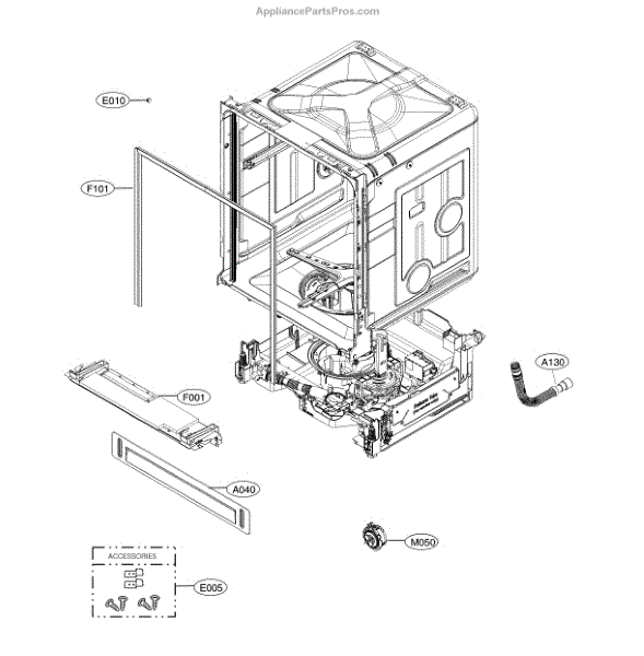 The Cover Assembly is an OEM component specifically designed for LG dishwashers. This assembly consists of the outer tub cover and inner mounted components that protect internal mechanisms.
