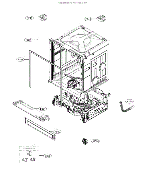 The Cover Assembly is an OEM component specifically designed for LG dishwashers. This assembly consists of the outer tub cover and inner mounted components that protect internal mechanisms.